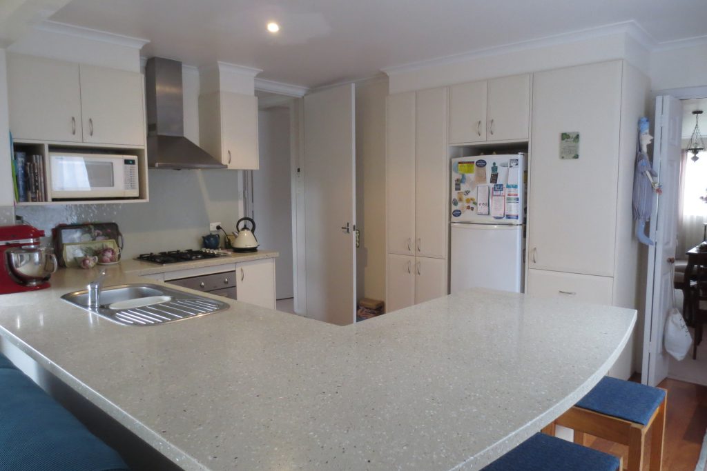 Fully renovated kitchen with stone benchtops, dishwasher, gas cooktop, plenty of storage.