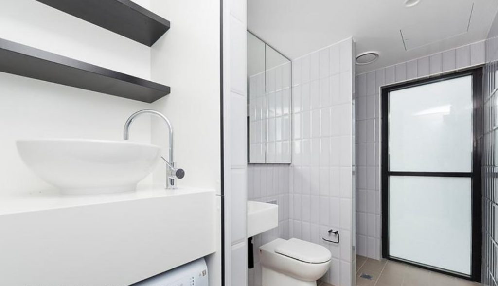 Sparkling bathroom with space saving European style laundry – washer/dryer included