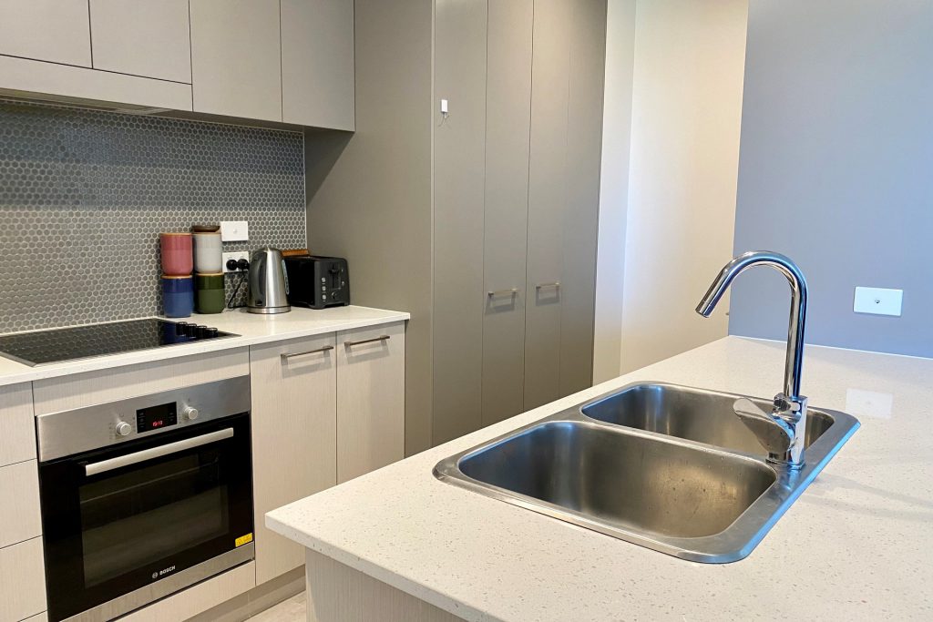 – Modern kitchen with stone bench tops, dishwasher, electric cook top & oven, plenty of bench and cupboard space.