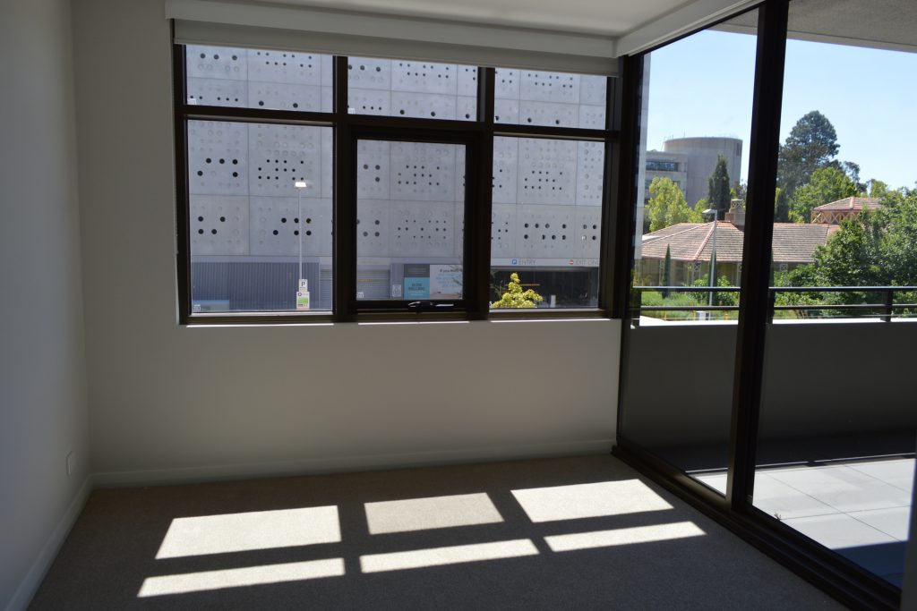 Large master bedroom with extensive wall of wardrobes, custom fitted shelving & hanging space for those who love an organised closet space.This bedroom has plenty of natural light and flows through to an undercover balcony with a mix of urban and greenspace outlook.
