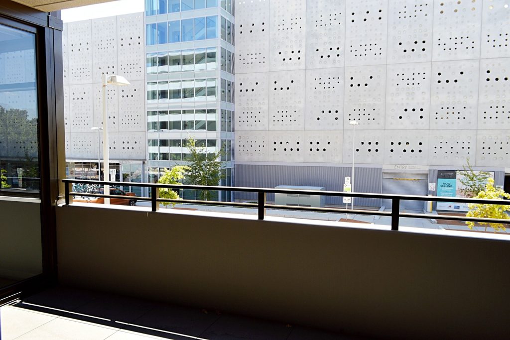 The modern kitchen boasts a stone benchtop, ceramic cooktop, electric oven, dishwasher, and sleek cabinetry with plenty of storage. The spacious master bedroom includes custom wardrobes, abundant natural light, and a private covered balcony with stunning city and leafy views.