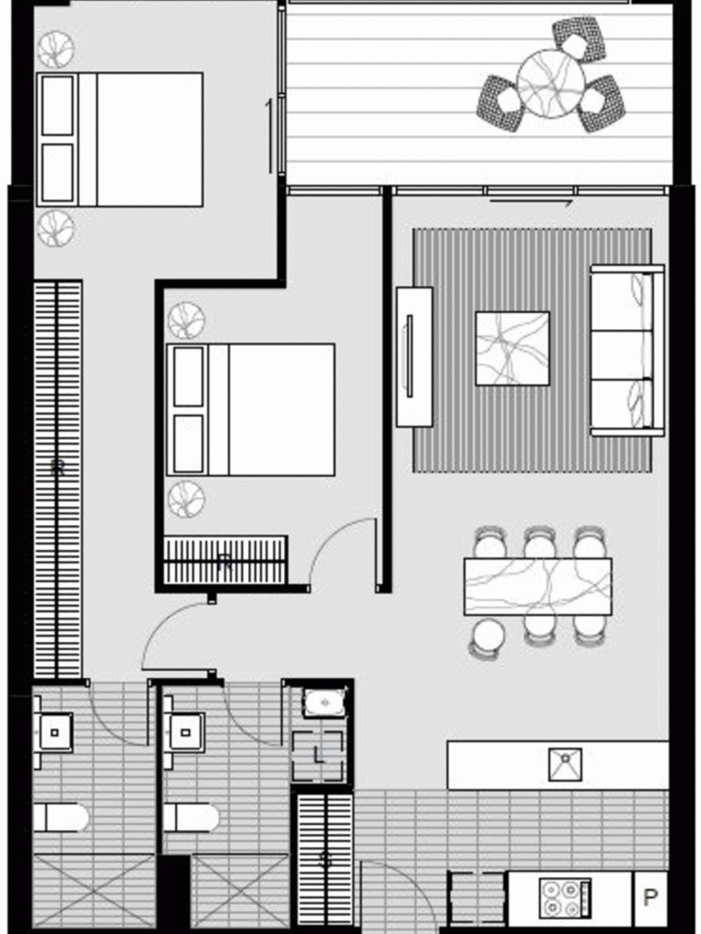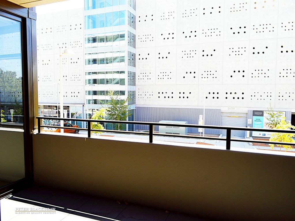 Large master bedroom with extensive wall of wardrobes, custom fitted shelving & hanging space for those who love an organised closet space.This bedroom has plenty of natural light and flows through to an undercover balcony with a mix of urban and greenspace outlook.