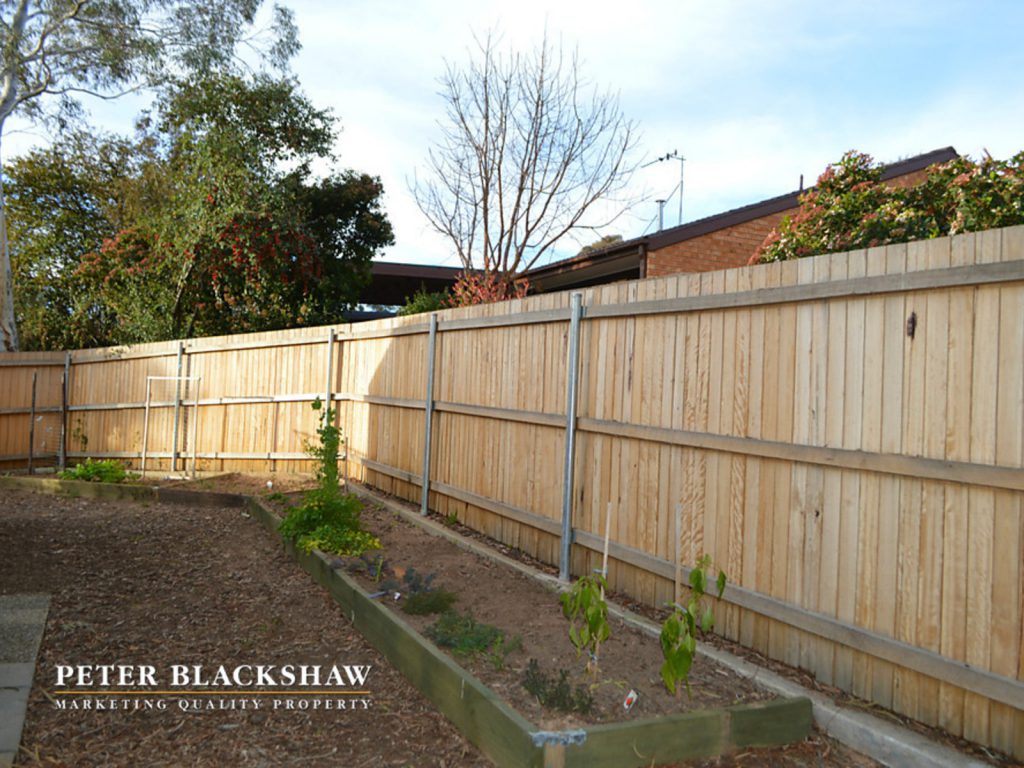 Enclosed rear courtyard has established vegetable garden with room for more, plus young apricot, nectarine and cherry trees.