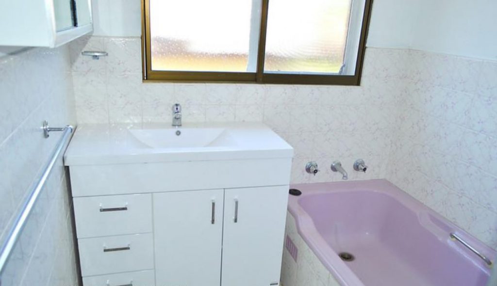 Largely original but functional bathroom with bathtub plus shower recess and updated vanity.