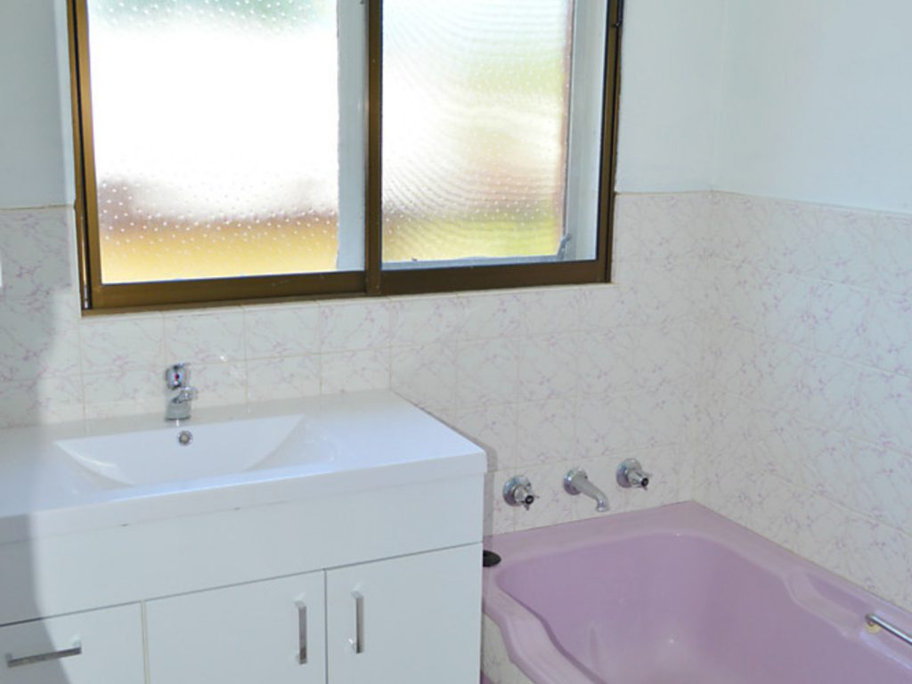 Largely original but functional bathroom with bathtub plus shower recess and updated vanity.