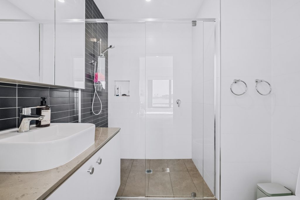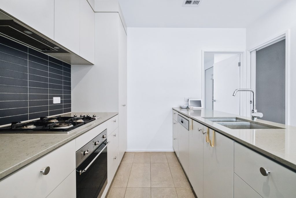 The home features a spacious open-plan kitchen complete with stone benchtops, tiled splashback, and quality stainless-steel appliances. Flowing seamlessly into the light-filled living and dining area, the space is enhanced by a desirable northerly aspect and direct access to a sunny balcony – ideal for outdoor dining, relaxing with a book, or soaking up the sunshine. A conveniently located powder room is also positioned off the dining area for added functionality.