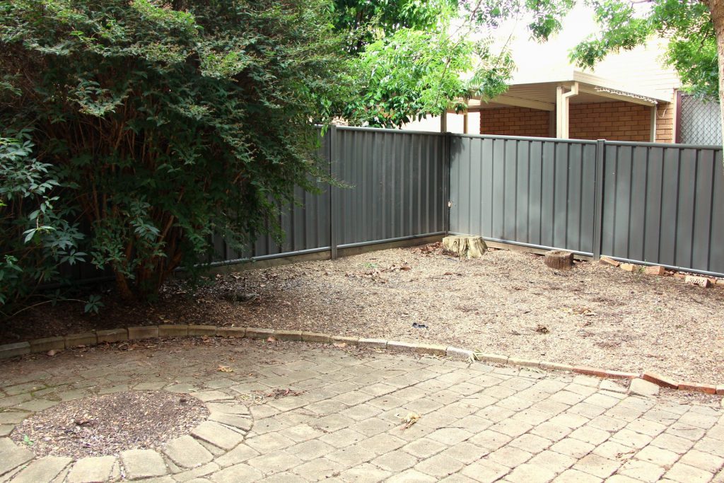 – North facing courtyard with easy care gardens