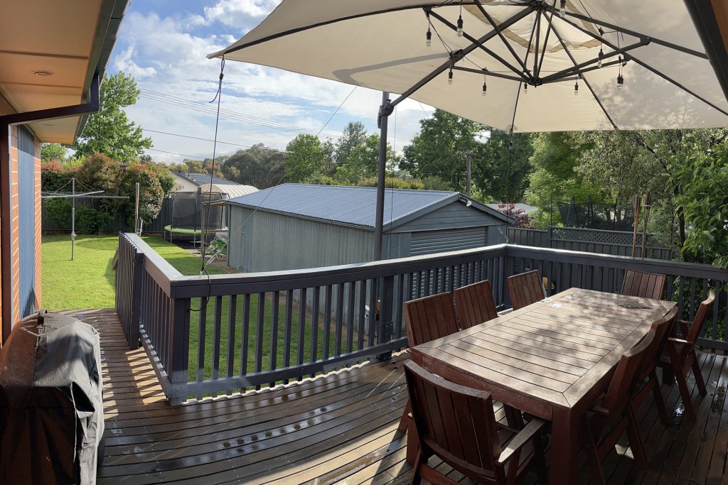 Large rear deck, access from kitchen and parents retreat
