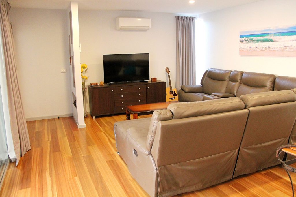 Spacious lounge room to the front of the home with stylish timber floorboards.