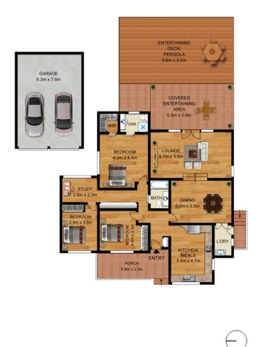 – Double garage with additional driveway space.