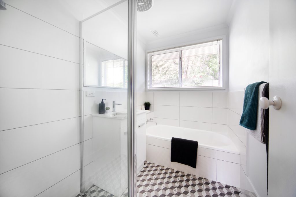 Renovated bathroom with bathtub and separate shower recess plus convenient separate toilet.