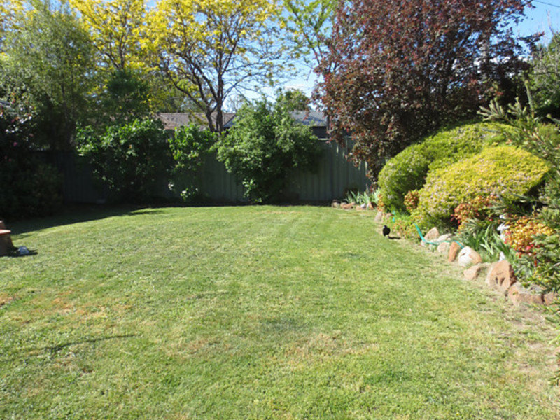 Fully enclosed rear yard with colourful garden beds, healthy lawn and room to run around.