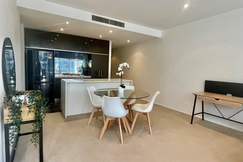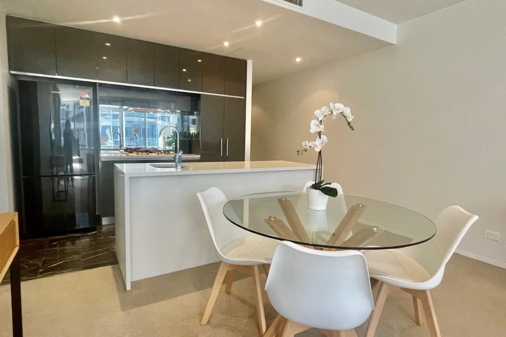 This fully furnished one bedroom, one bathroom apartment boasts the best in luxury and the latest in European stainless steel appliances, stone bench tops and high quality fixtures and fittings. The modern designer kitchen flows seamlessly to the spacious living area.