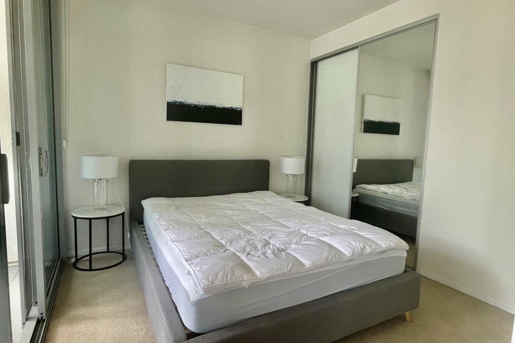 This fully furnished one bedroom, one bathroom apartment boasts the best in luxury and the latest in European stainless steel appliances, stone bench tops and high quality fixtures and fittings. The modern designer kitchen flows seamlessly to the spacious living area.