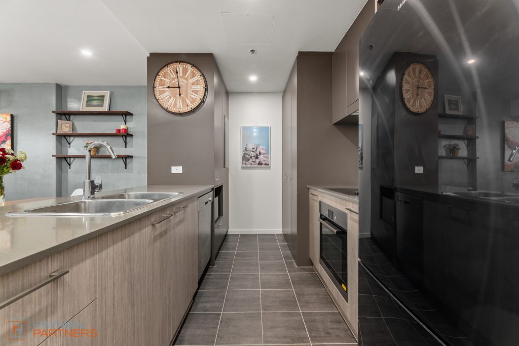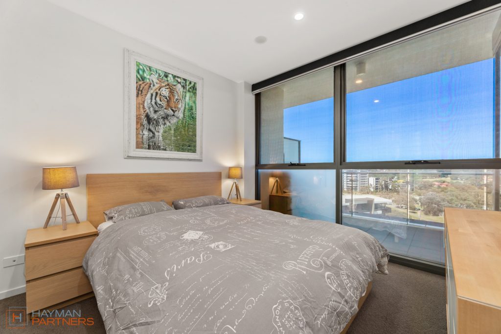 This apartment boasts plenty of natural light through the floor-to-ceiling windows in both bedrooms & a neutral colour scheme, sure to suit any décor. The stylish kitchen overlooks the living area & boasts 20mm stone benchtops, stainless steel Bosch appliances, plenty of storage & a modern splash back.