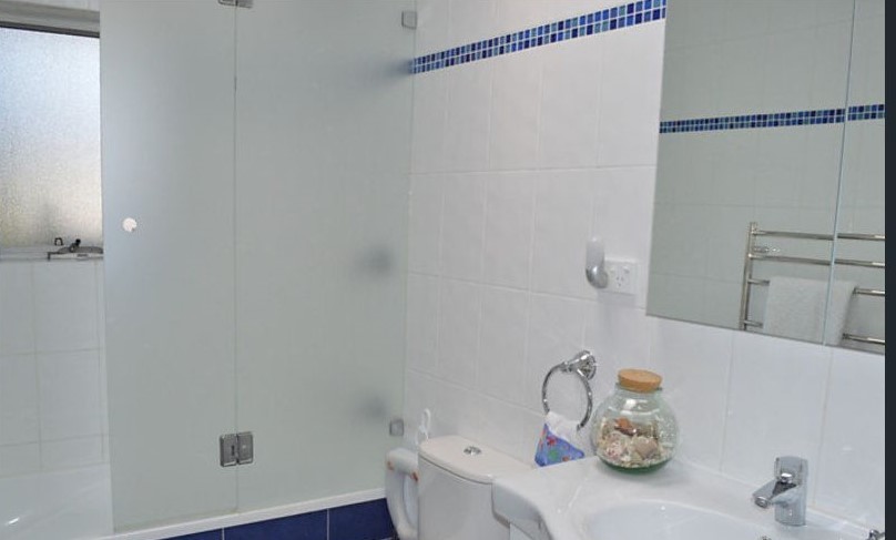 Sparkling ensuite with floor to ceiling tiles, in slab heating and designer shower recess.
