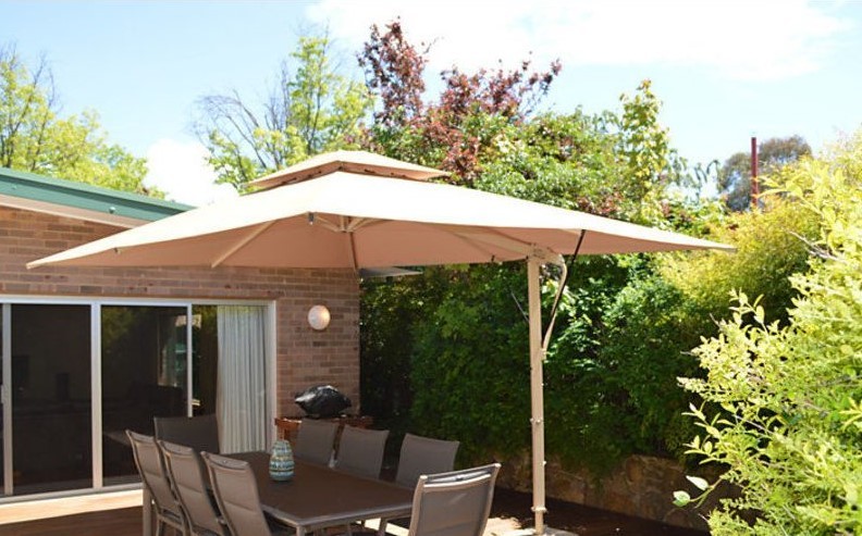 Huge timber deck with umbrella shade – perfect for alfresco dining/entertaining.