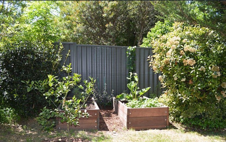 Garden has established raised vegetable beds, water tank, sandpit, mature shrubs & trees – very private and seasonal garden maintenance may be negotiable.