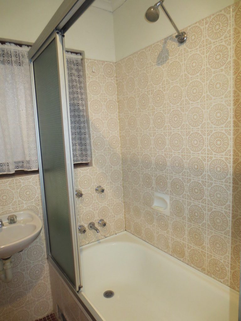 – The bathroom contains the laundry facility including a washing machine and clothes dryer