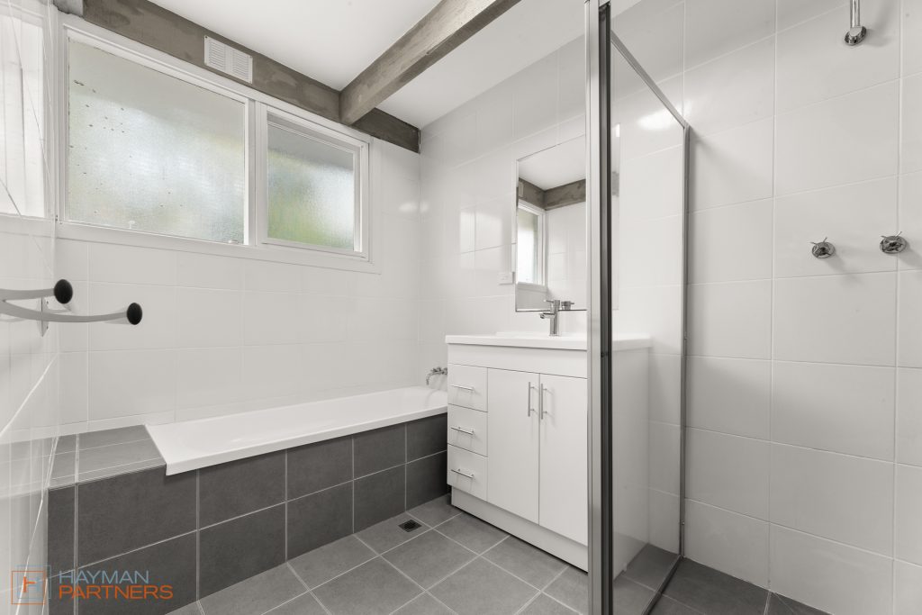 The accommodation includes three generously sized bedrooms, each equipped with built-in robes to provide ample storage space. These light-filled rooms offer a cozy retreat, ensuring comfort for everyone in the household. The renovated main bathroom is well-appointed with a bathtub and shower, complemented by a separate toilet, offering convenience and a touch of luxury.