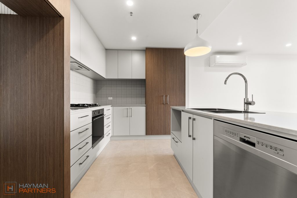 Set across 65m2 of internal living, the efficient design features a generous north facing main bedroom, along with a sizeable study/multipurpose room with its own built-in-robes. The open plan living & kitchen areas are designed to balance form with functionality. The exquisite kitchen features a generous island bench, ample storage space along with quality stainless steel Smeg appliances & a 4-burner gas cooktop.