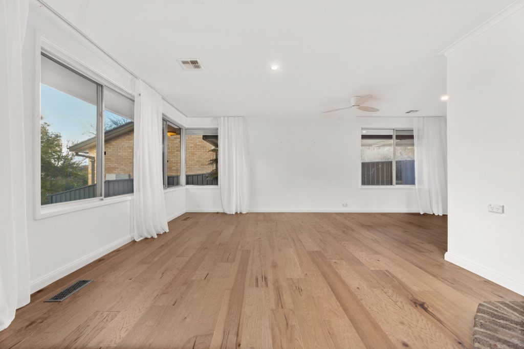 In a quiet cul-de-sac with uninterrupted leafy views straight down the Curtin green belt, also within walking distance to sought-after schools, the Curtin shops and the Woden Shopping precinct, this four-bedroom home provides the ultimate in family convenience.