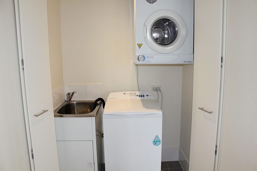 Tucked away European style laundry with dryer included.