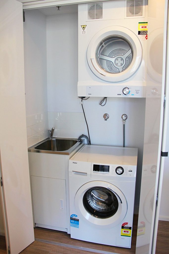 European laundry including Haier dryer and Haier washing machine.