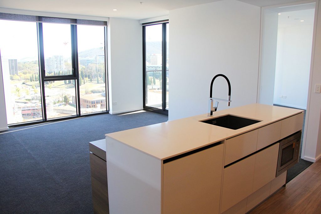 This apartment features open plan kitchen and living room with floor to ceiling showcase double glazed windows providing an exceptional sceptical of Canberra.