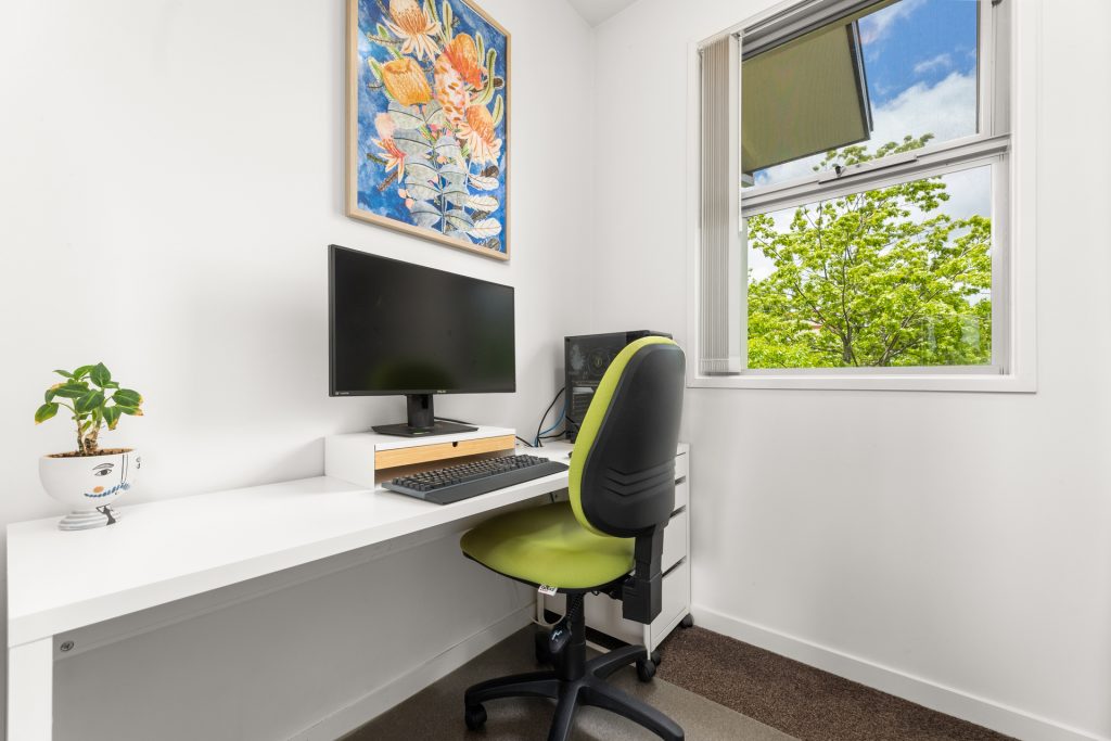 The generously sized bedroom comes compete with a built-in wardrobe & additional private balcony area. Enjoy the tranquil level 3 location, dryer to the European style laundry & a study nook – perfect for setting up a home office.