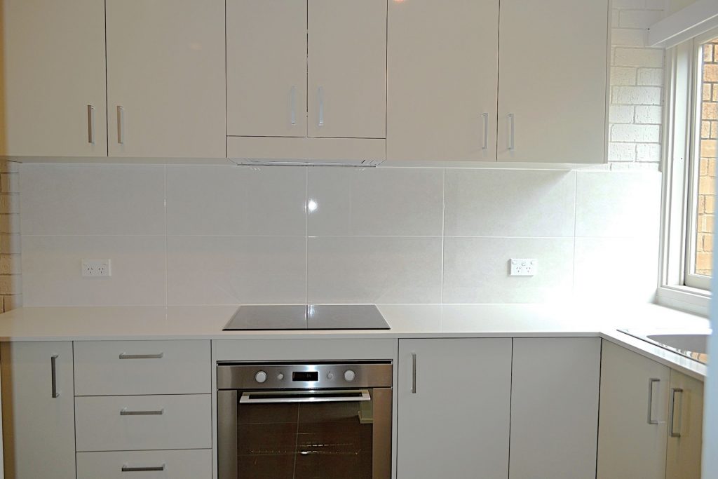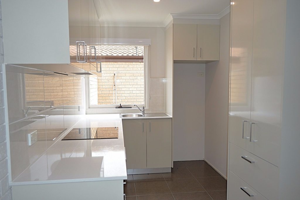 – Kitchen with electric cooking – stone benchtops & well designed cupboard space.