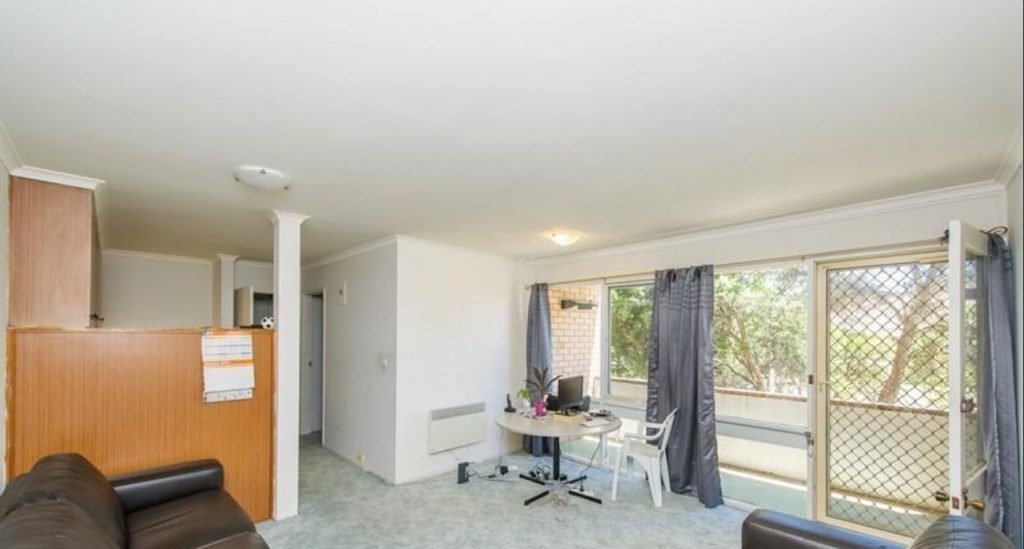 – Open plan kitchen & living area with covered balcony and leafy outlook.