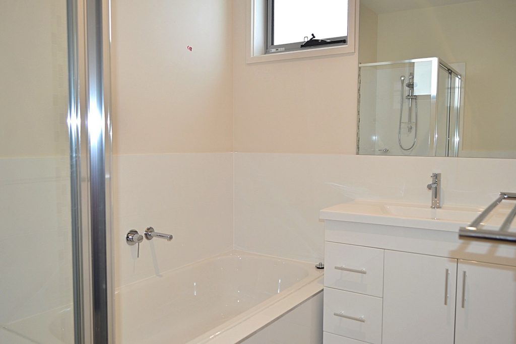 Second and third bedrooms upstairs share the main bathroom with full sized bath tub, separate shower recess and modern vanity.