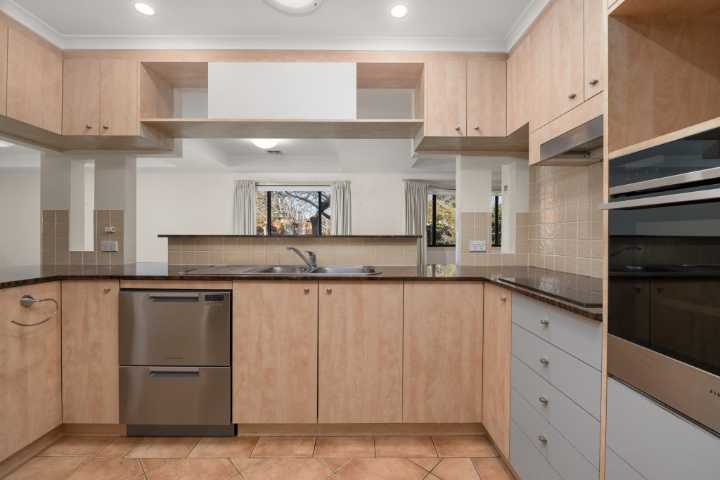 Both the large main bedroom and expansive living area are on the ground floor and open onto the courtyard, giving superb indoor/outdoor flow. Its location, at the end of the block, means that it has extra windows, giving the home superb natural light.