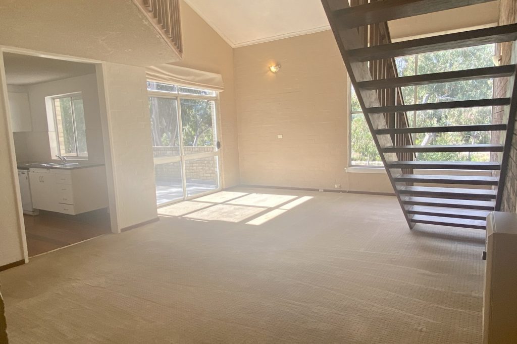 Upon entering this home you will be delighted by the light filled living area with its cathedral ceiling that leads to a private balcony overlooking the leafy trees. Offering a functional kitchen area that has generous bench space and ample cupboards plus the convenience of a dishwasher. Also located on the lower level is the master bedroom that includes two built-in robes and an ensuite.