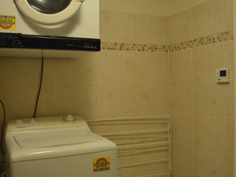Bathroom with underfloor heating & laundry with washing machine & clothes dryer