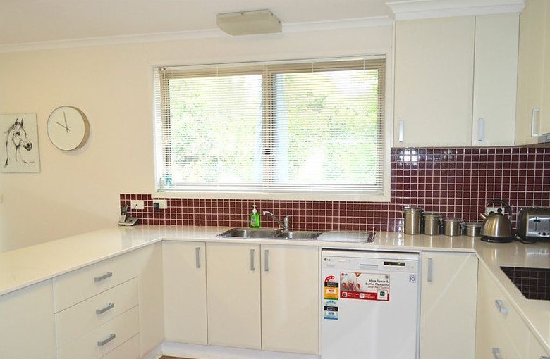 Caesar stone kitchen with top quality appliances including ceramic cooktop, double pyroliitic oven and dishwasher. There is a huge amount of bench and cupboard space including pantry, a large fridge space and plenty of room for several to be in the kitchen at once -great for the morning or afternoon tea rush.