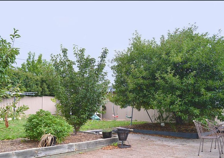 Fully enclosed rear garden with secure colourbond fencing which is easily supervised from the kitchen and living area. Garden shed storage, paved area for outdoor setting and established shade trees and shrubs.