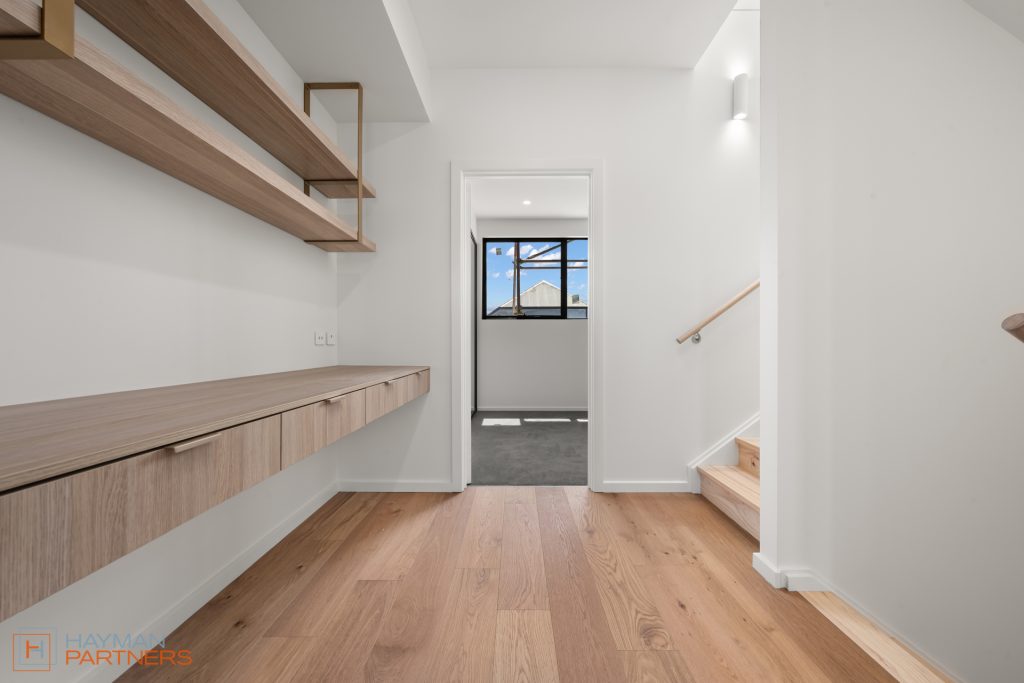 Functional space extends to a large built-in desk area on the middle landing, complete with additional cupboard space. Stay comfortable year-round with zoned ducted reverse cycle heating and cooling that spreads throughout the house. Parking is a breeze with a spacious side-by-side 5.4×5.5m2 garage tucked away in the basement.