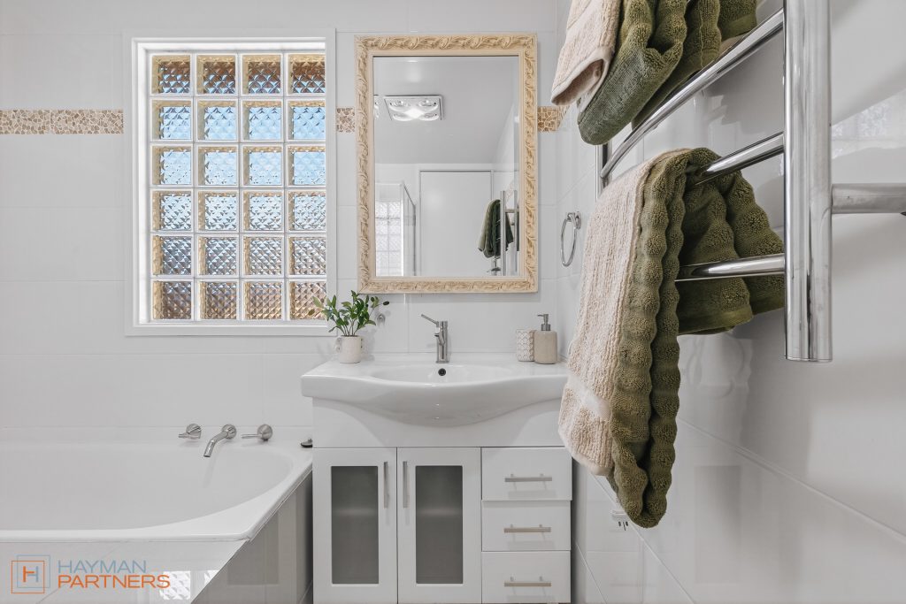 The updated kitchen is both stylish and practical, featuring an Italian porcelain slab benchtop, ample storage, a large oven, dishwasher and extra bench space, making busy mornings and easy weeknight meals a breeze.