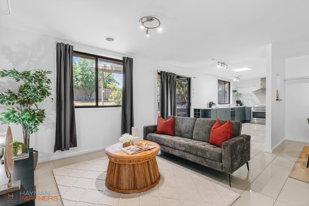 All three bedrooms are privately positioned at the rear of the home and include built-in robes. The renovated bathroom offers full-height tiling, a modern vanity and the added convenience of a separate toilet.