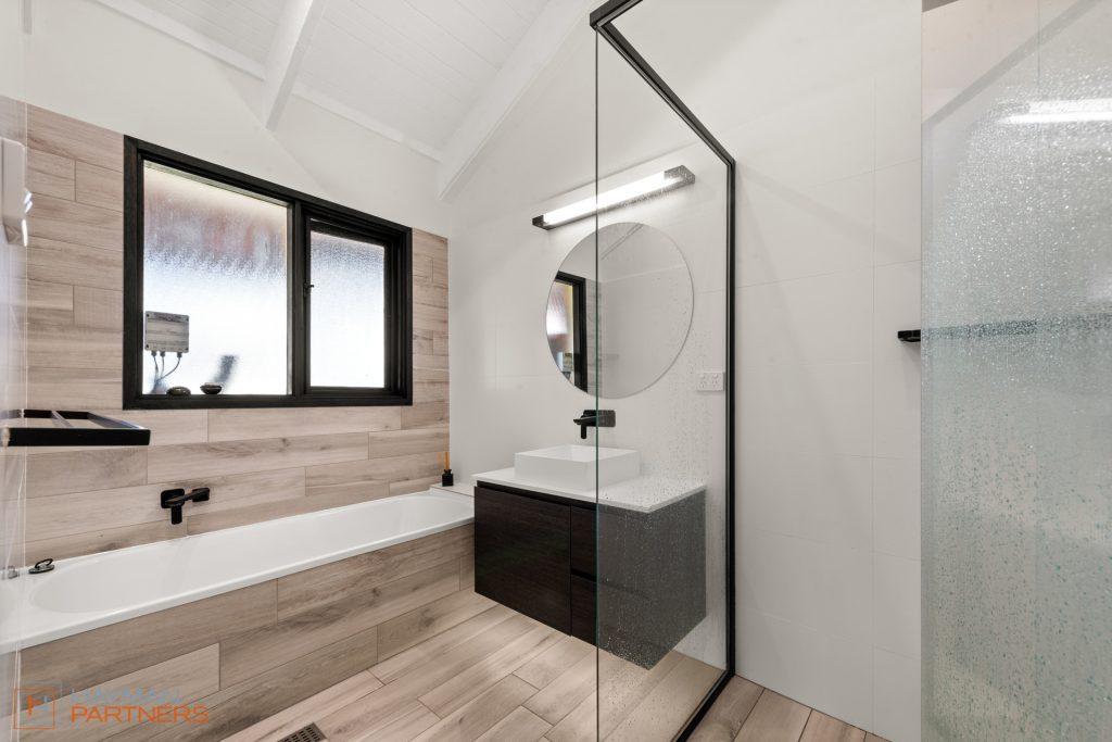 – Renovated main bathroom featuring bath