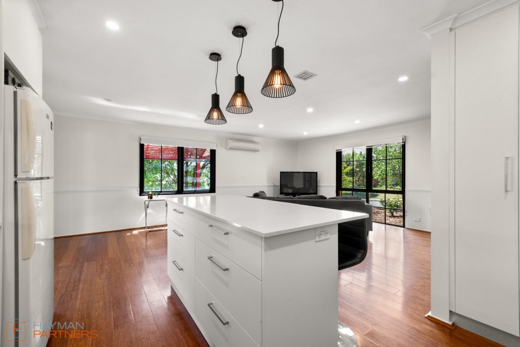 Accommodation is provided with the four bedrooms, all with built in robes, ensuite to the upstairs master suite. The three downstairs bedrooms are serviced by the main renovated bathroom, featuring a bath and ample storage.