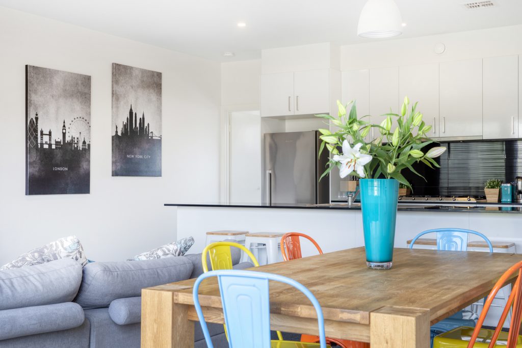 We are captured by the lovely open plan living and dining area, adjacent to the stunning modern kitchen. This gorgeous area extends through bi-fold doors to the outdoor entertaining area.