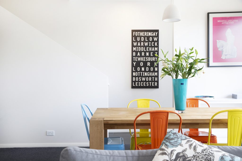 Open plan living and dining area on ground floor with additional living space on second floor.