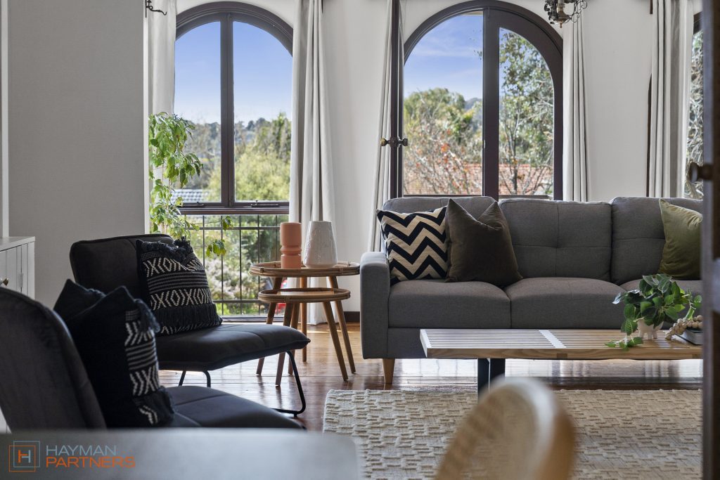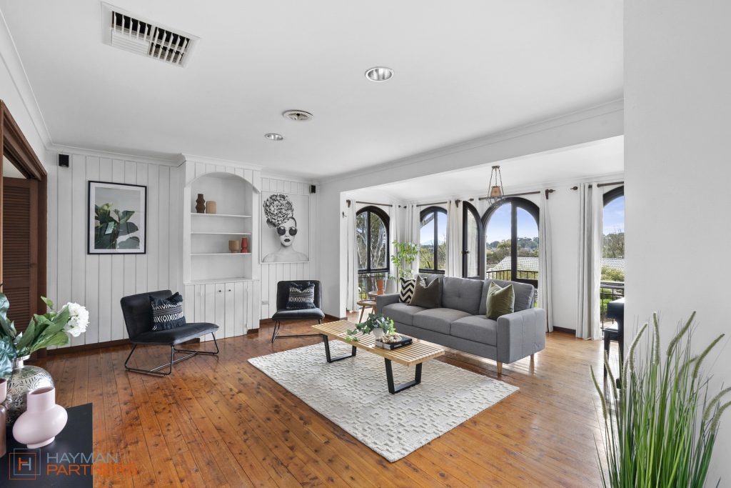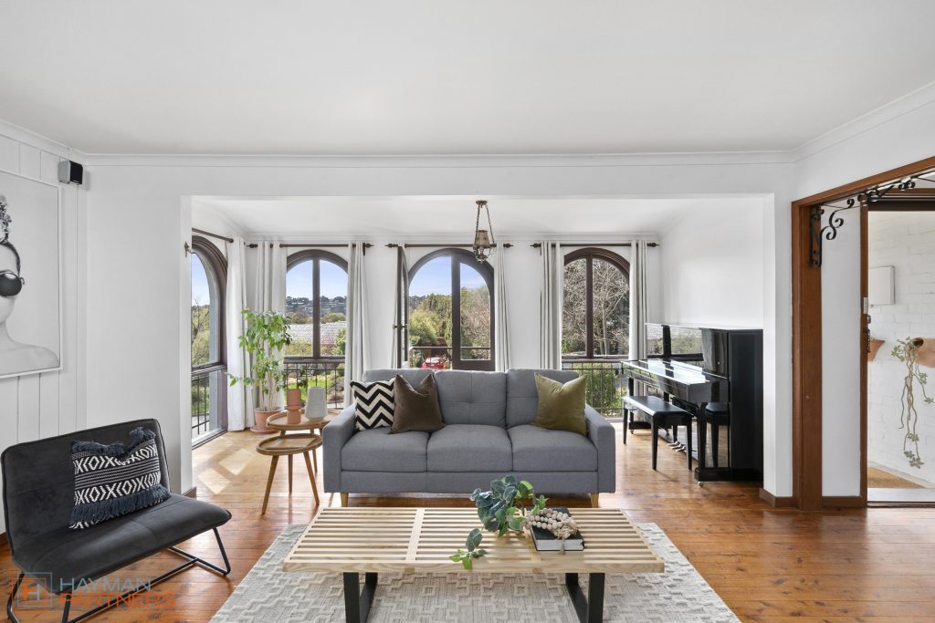 Commanding views to Black Mountain greet you on entry and, along with polished wooden floors and timber arch windows, frame the vistas of the large open plan lounge and dining rooms, featuring a gorgeous Juliet balcony and connecting well to the brand new kitchen. An additional family/meals room, providing further versatility to the living/entertaining spaces, shares open plan with the good-sized kitchen, enjoying plenty of bench space and storage as well as all-electric cooking and a garden outlook.