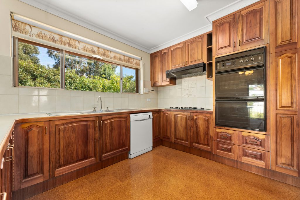 Open plan kitchen with breakfast bar, gas cooktop, Bosch dishwasher and generous storage