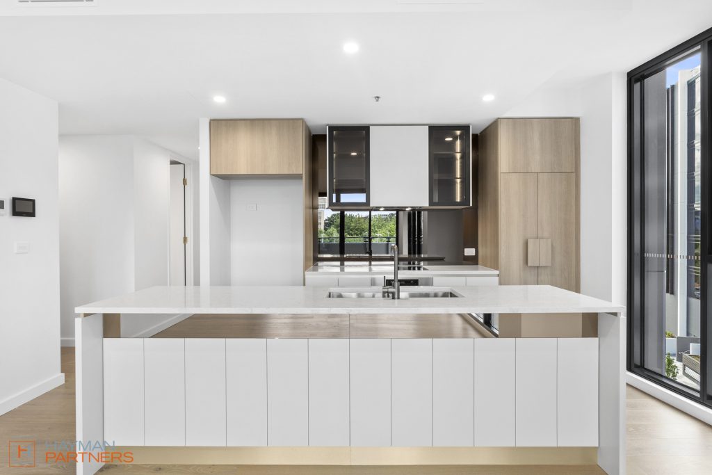 This new two-bedroom two-bathroom apartment is as luxurious as it is practical! The kitchen boasts plenty of cupboard space, backlit feature cupboards, new Miele appliances and a wonderful open plan design. The two large double glazed sliding doors and windows allow you to make the most of the beautiful natural Northern sun light.