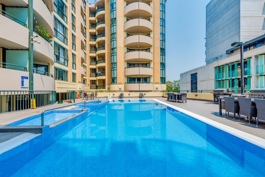 “James Court” offers residents the use of the gym, sauna and pool