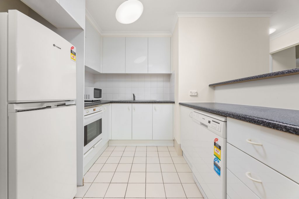 Be quick to inspect this recently updated one bedroom apartment in the heart of the city. The kitchen is well designed with generous cupboard and bench space and comes equipped with dishwasher and a refrigerator. Both the living area and bedroom open out to the balcony which offers space for a small outdoor table and 2 chairs.The bathroom features a corner spa bath with shower and European laundry including washing machine and dryer.